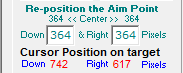 The cursor position from the Aim point will be constantly and dynamically displayed in the upper portion of the left panel and the cursor position from the upper left corner will be constantly displayed in the left panel under the label titled "Cursor Position on target"