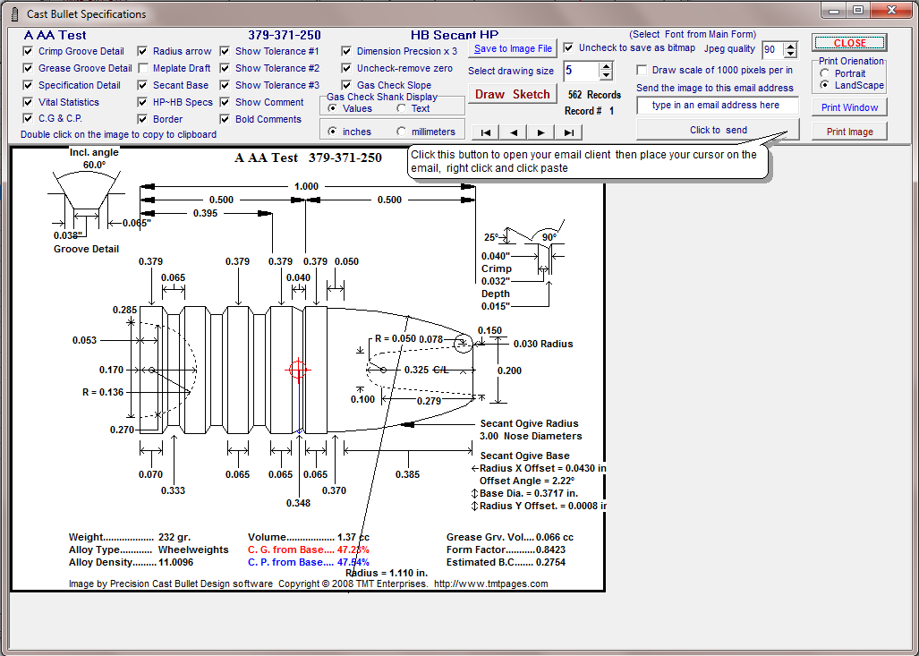 - When the bullet design is finalized, the dimension sketch can be emailed to a mold maker.