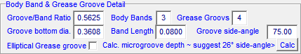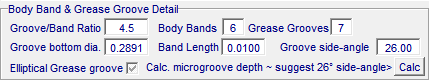 #8. Enter a Groove/Band ratio of 1, a value of 2 for the number of Body Bands and press the tab key to auto-calculate the remaining values. There are now 2 body bands, 3 grease grooves and one crimp groove band of all the same length and rounded off to the nearest 0.005" inch.
