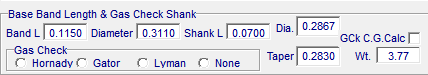 #7. The net result is the length of the driving band and the gas check shank (if present). Enter that value in the Base Band Length Field.