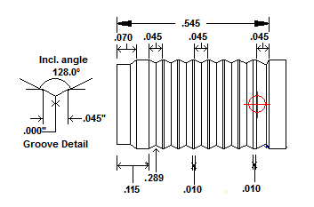 #2. Subtract the length of the crimp groove(s) and the length of the crimp groove interval(s) from the value defined in step #1. ( ( 0.545 - 0.045 = 0.500 )
