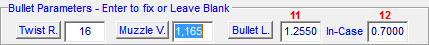 The Twist Rate and Muzzle Velocity field value entries are optional. They may be used to calculate an optimum bullet length that is appropriate for the caliber and useful muzzle velocity of the application.
