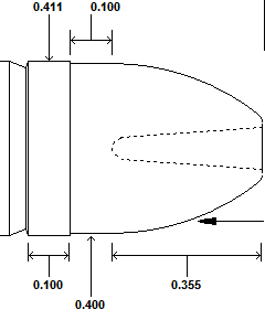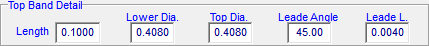 - Top Dia is the band edge next to the Bore Ride or Nose Ogive. Default is the same as Lower Dia. and may be edited to provide a tapered top band.