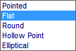 The tip configuration drop down list may use either Pointed, Flat or Round for the initial calculations and may be edited later.