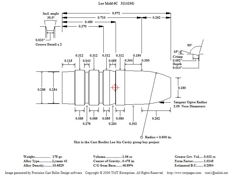 Precision Bullet Design Images / Lee Mold 6C 31141SG 175_gr