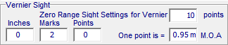When the trajectory is calculated, the sight staff readings in both points and staff inches, marks and points will be tabulated and displayed on the Vernier Sight settings and adjustment panels for each range in the trajectory