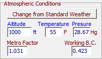 Making no entries ( Altitude = 0 = sea level ) allows the Atmospheric conditions to remain at the standard sea level value and makes no change in the Metro factor of " 1.000 ", which in turn has no effect on the ballistic coefficient of the selected bullet at sea level and standard atmospheric conditions..